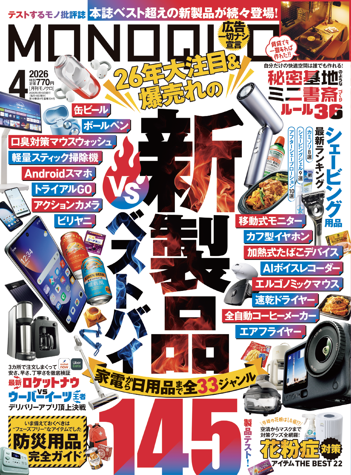 爆売れ中の新製品VSベストバイ、買って後悔しないのはどっち? 防災や花粉症対策など暮らしの安心&快適を叶える一冊!!【MONOQLO4月号】