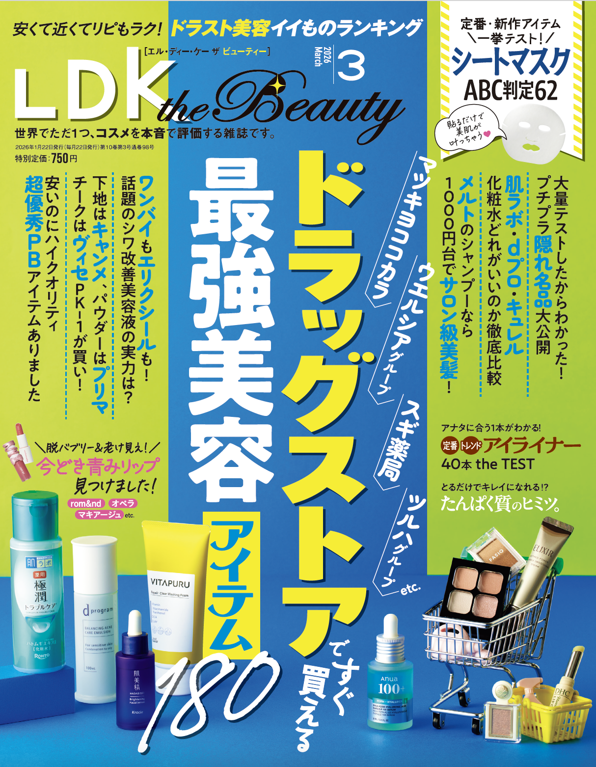 ドラストコスメの最強アイテムを徹底調査! 青みリップやアイライナーなど、イマドキメイクの正解を教えます!!【LDK the Beauty 2026年3月号】