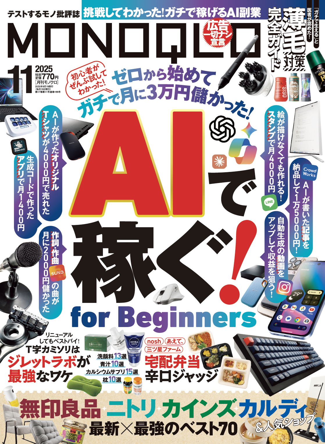 ガチで儲かる「AIで稼ぐ方法」を調査! 無印やカルディの最新×最強ベストアイテムも見逃せない!!【MONOQLO11月号】