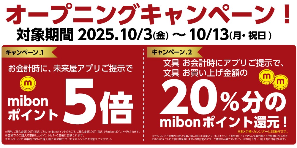 文具がお得すぎる!20%ポイント還元キャンペーン開催!未来屋書店須坂店が新規オープン