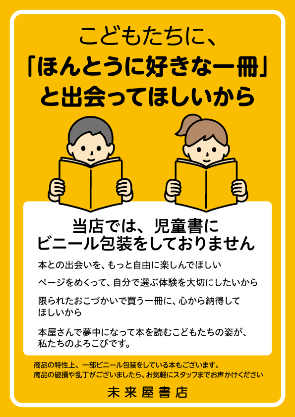 未来屋書店、全国で児童書シュリンクパックを廃止 子どもたちに“ほんとうに好きな一冊”と出会ってほしいから