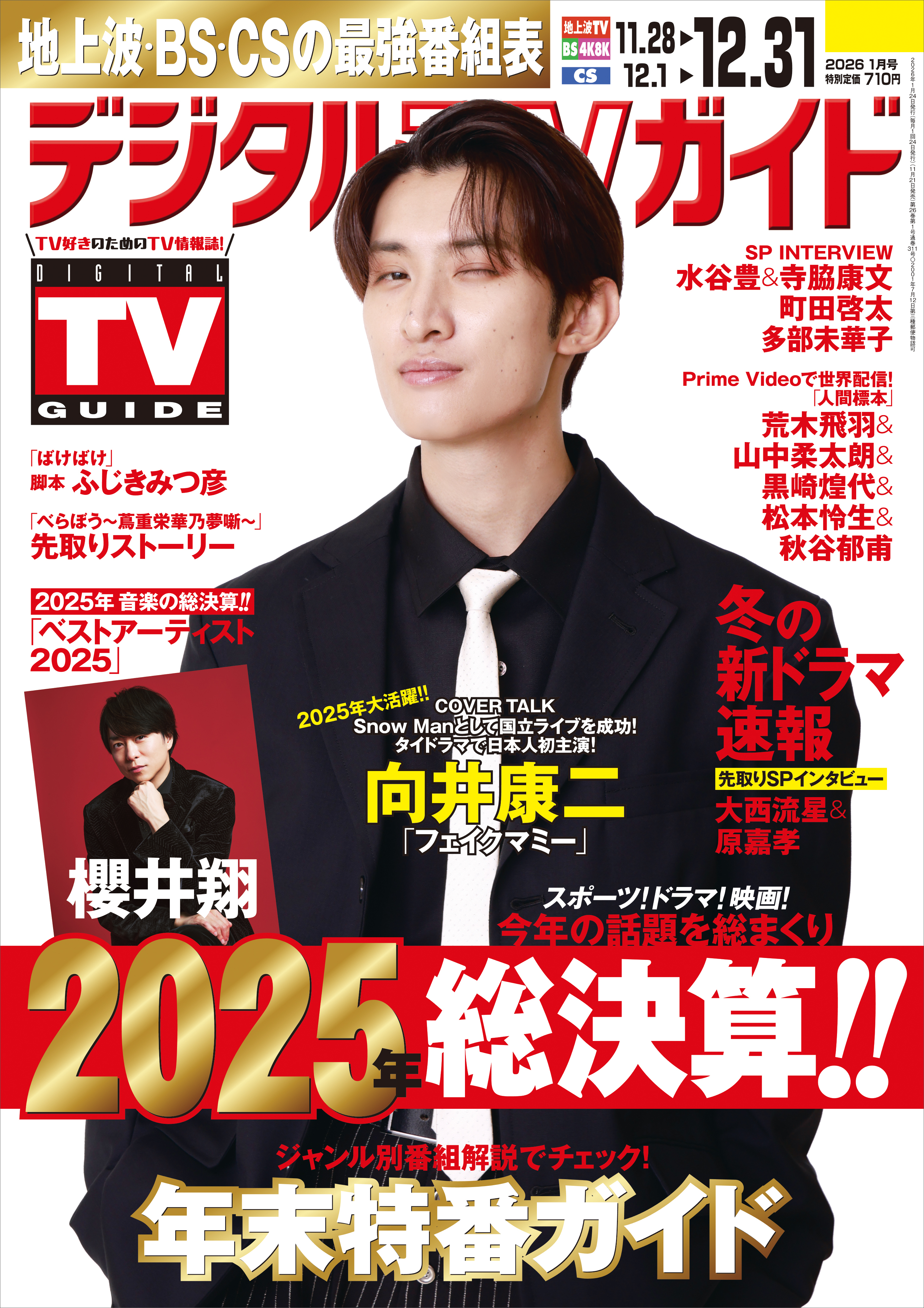 「タイ作品出演もSnow Manのため」「フェイクマミー」出演・向井康二が表紙! 地上波・BS・CS掲載最強番組表!のデジタルTVガイド1月号、本日発売