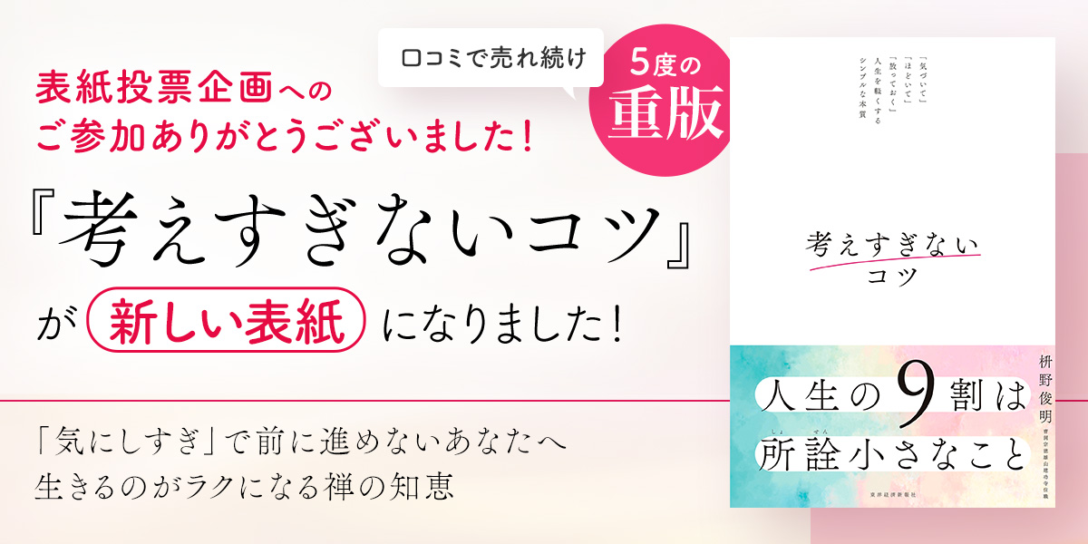 【5度目の重版記念】『考えすぎないコツ』表紙リニューアル!投票で「心に優しく寄り添う」デザインに決定