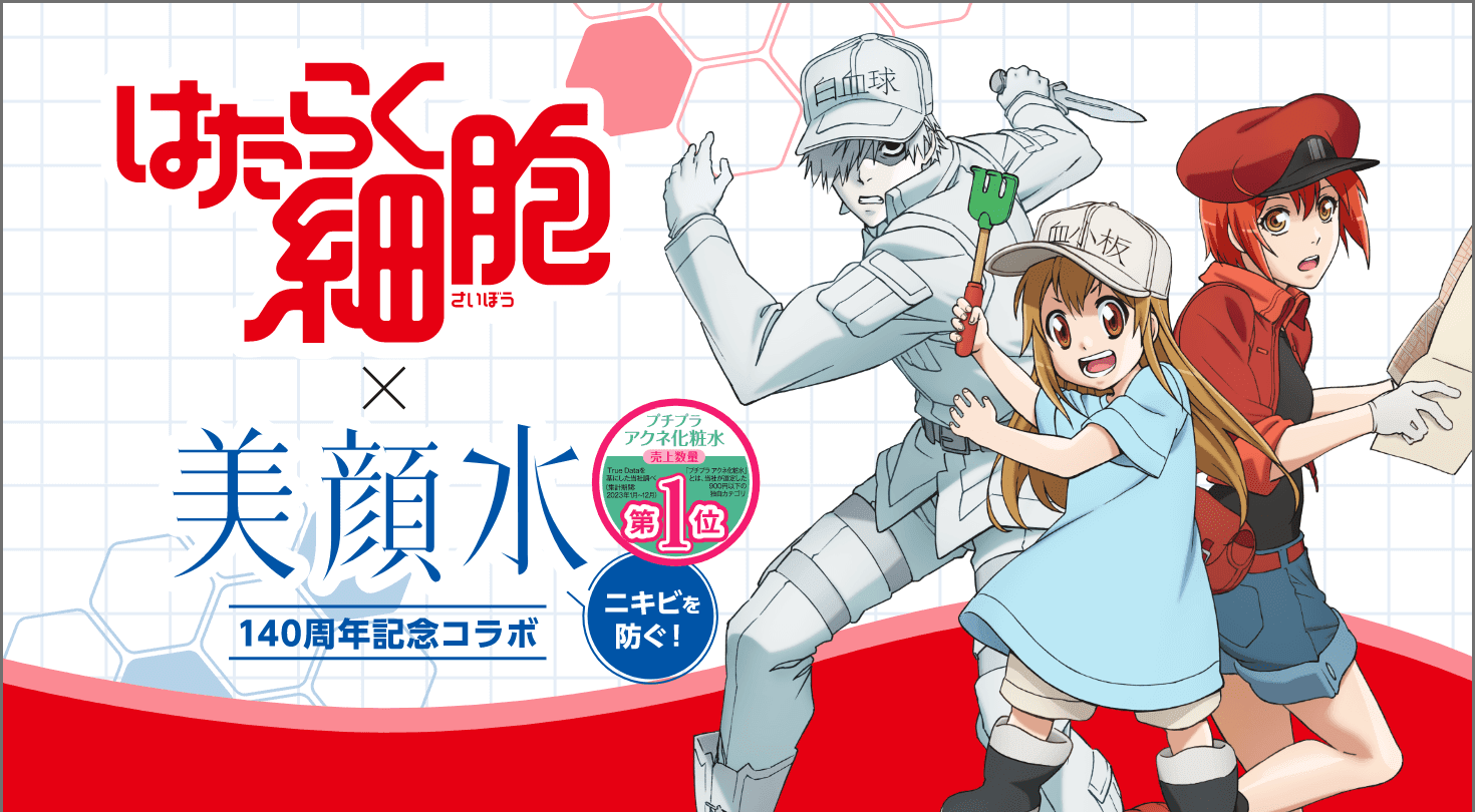 大ヒットアニメ『はたらく細胞』と140周年を迎える『美顔水』の限定コラボデザインが期間限定で発売開始!