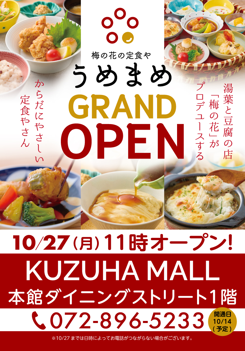 【梅の花の定食や うめまめ】くずはモールに10月27日グランドオープン!~「梅の花」プロデュースのからだにやさしい定食やさん~