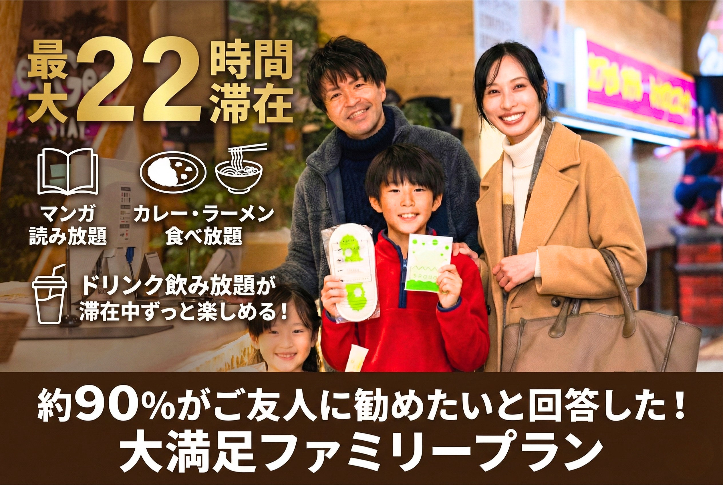 【イージーステイ大宮】最大22時間!滞在中ずっと食べ飲み放題&マンガ読み放題の大満足ファミリープランを開催!