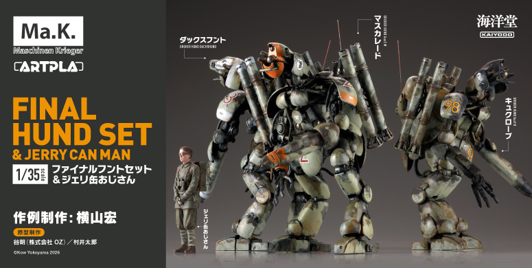 シュトラール軍ヒューマノイド型無人邀撃機、グローサーフント武装強化型3機種の豪華セットに加え、初プラキット化のキャラクター「ジェリ缶おじさん」が再登場!
