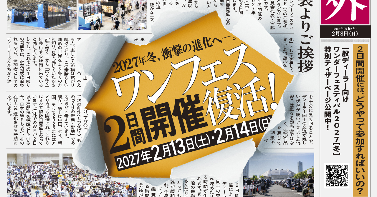 世界最大級の造形・フィギュアの祭典『ワンダーフェスティバル』が、36年ぶりに2日間開催へ!2027年2月の開催日を発表