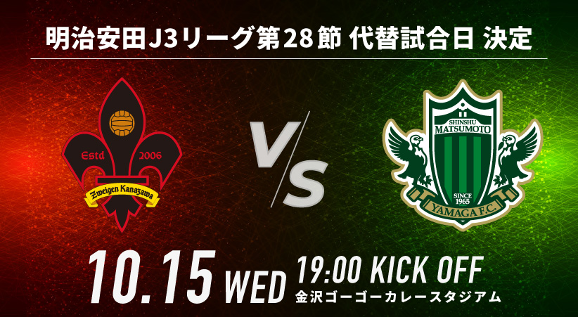 明治安田J3リーグ第28節 ツエーゲン金沢 vs 松本山雅FC 代替日決定のお知らせ