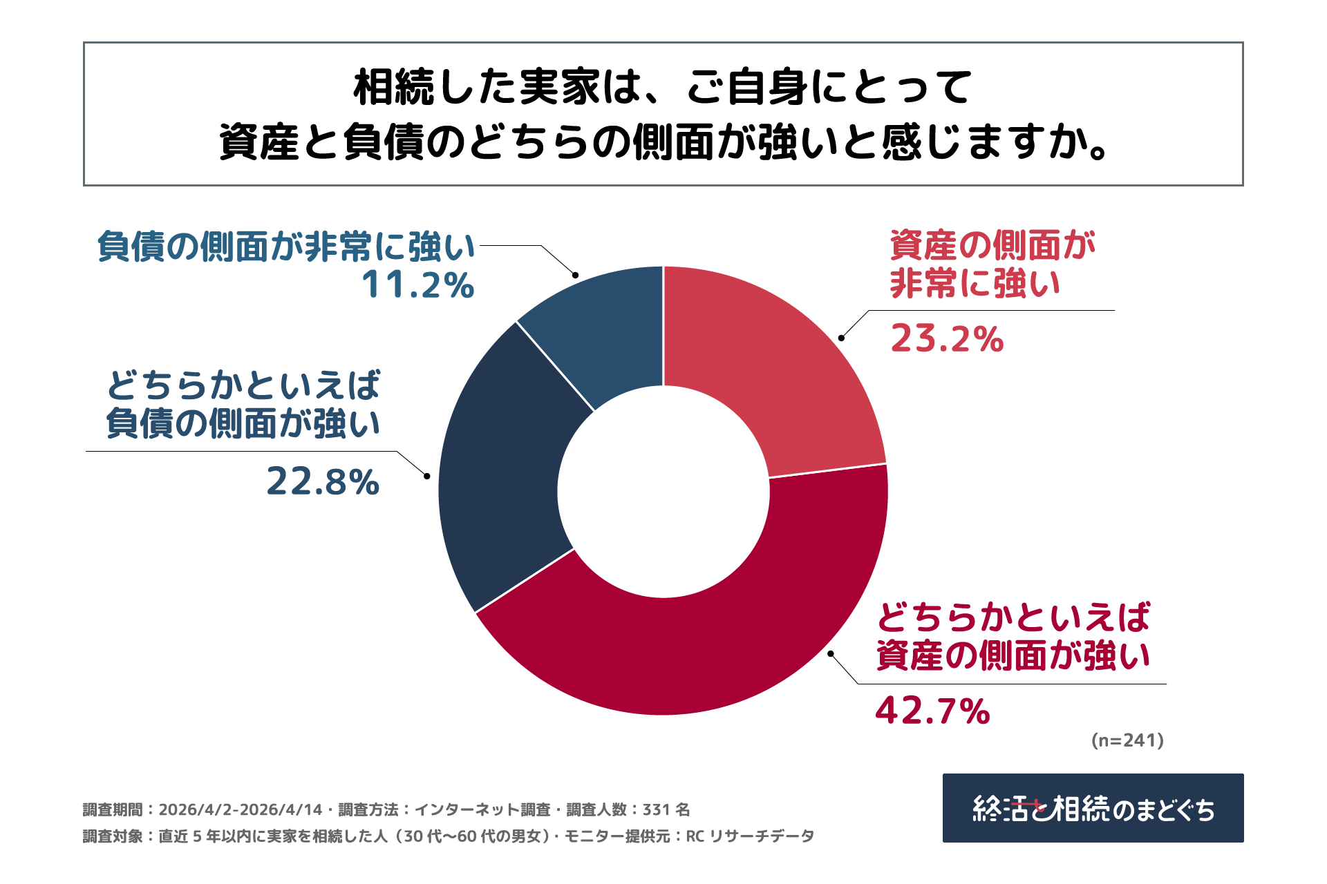 直近5年以内に実家を相続し現在も何らかの形で所有している人の65%以上が、「負債」よりも「資産」の側面が強いと感じている!株式会社終活のまどぐちが「実家の相続における負担意識に関する調査」を実施!
