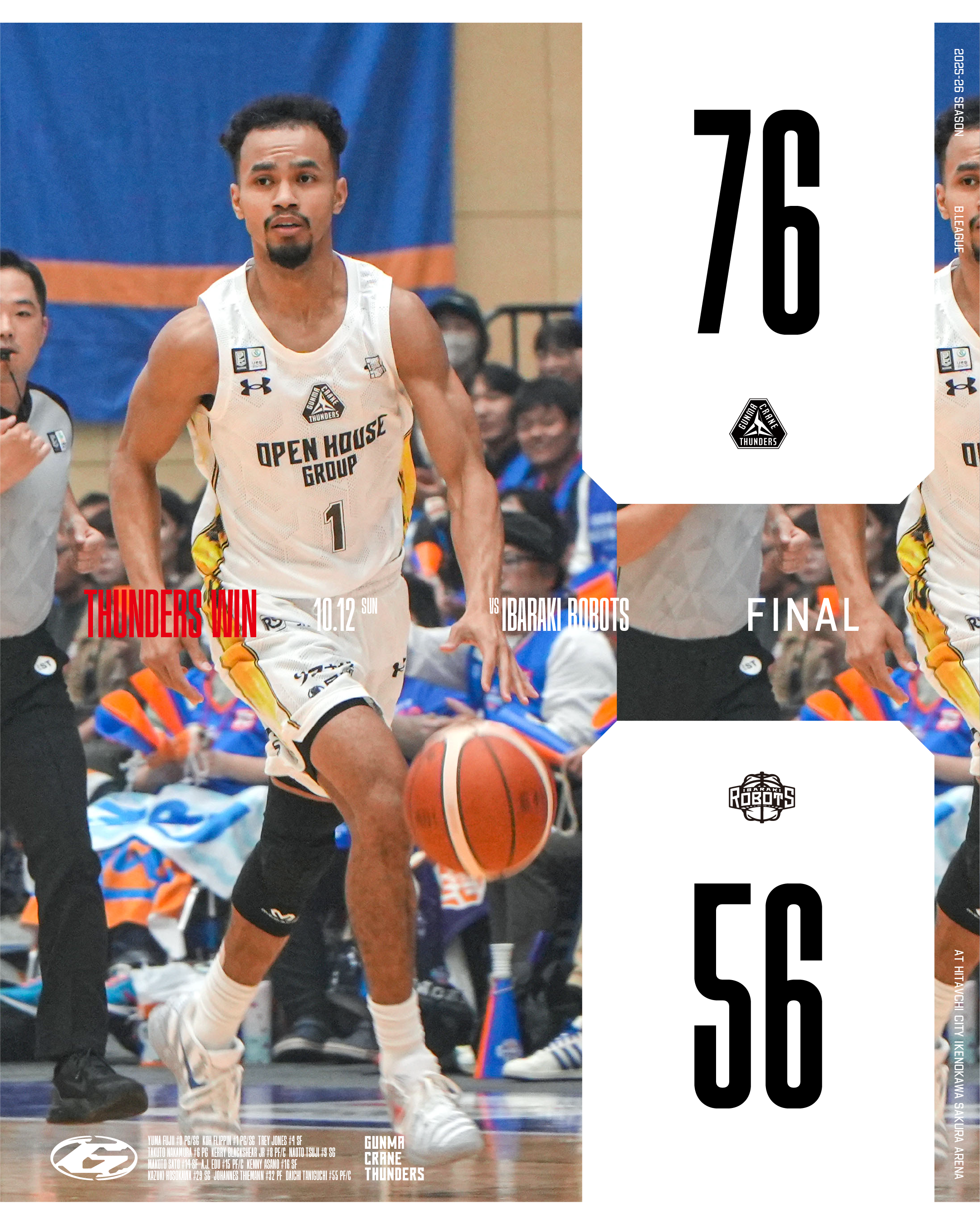 【群馬クレインサンダーズ:試合結果】10/18(土) vs 千葉ジェッツ りそなグループ B.LEAGUE 2025-26シーズン
