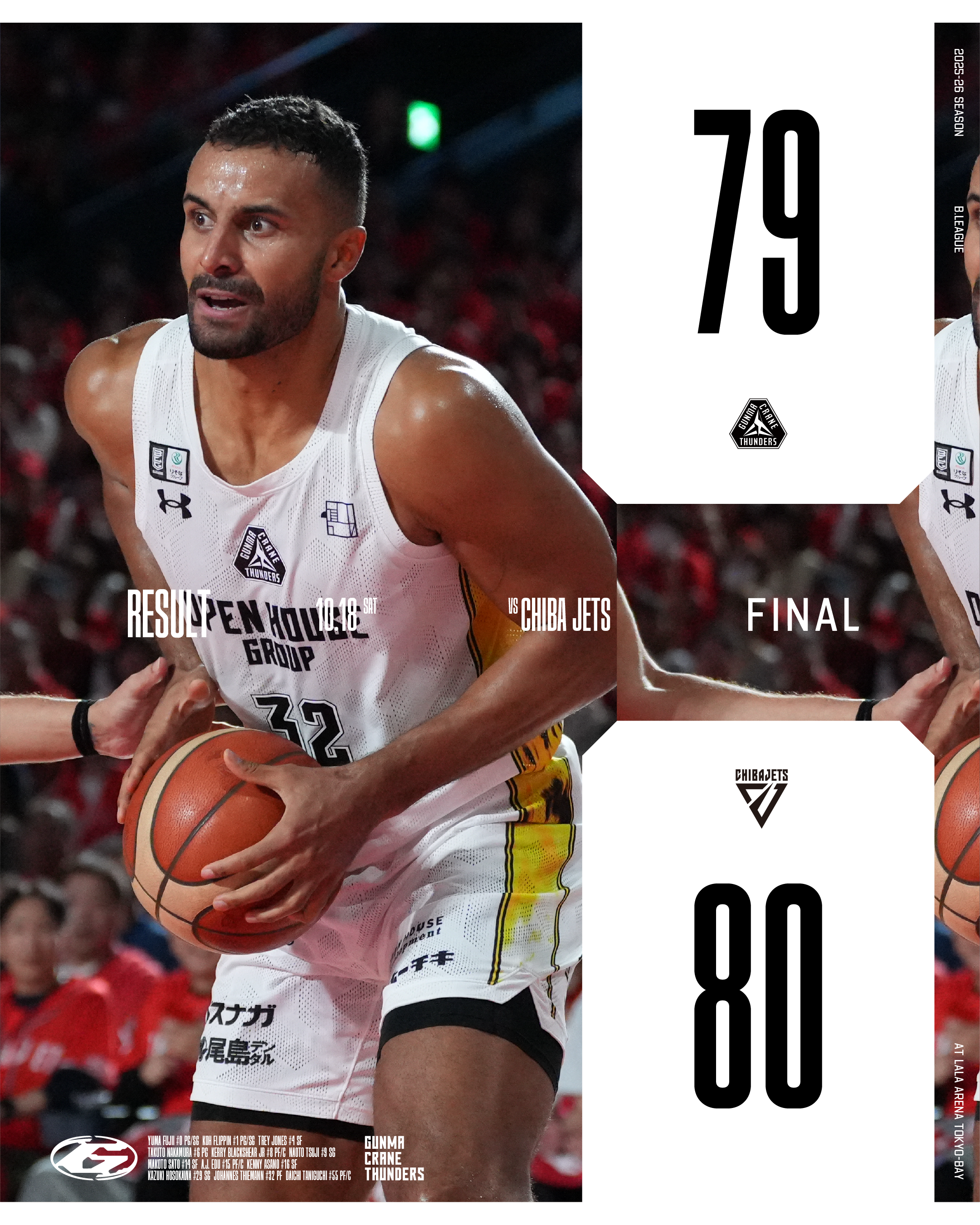 【群馬クレインサンダーズ:試合結果】10/19(日) vs 千葉ジェッツ りそなグループ B.LEAGUE 2025-26シーズン