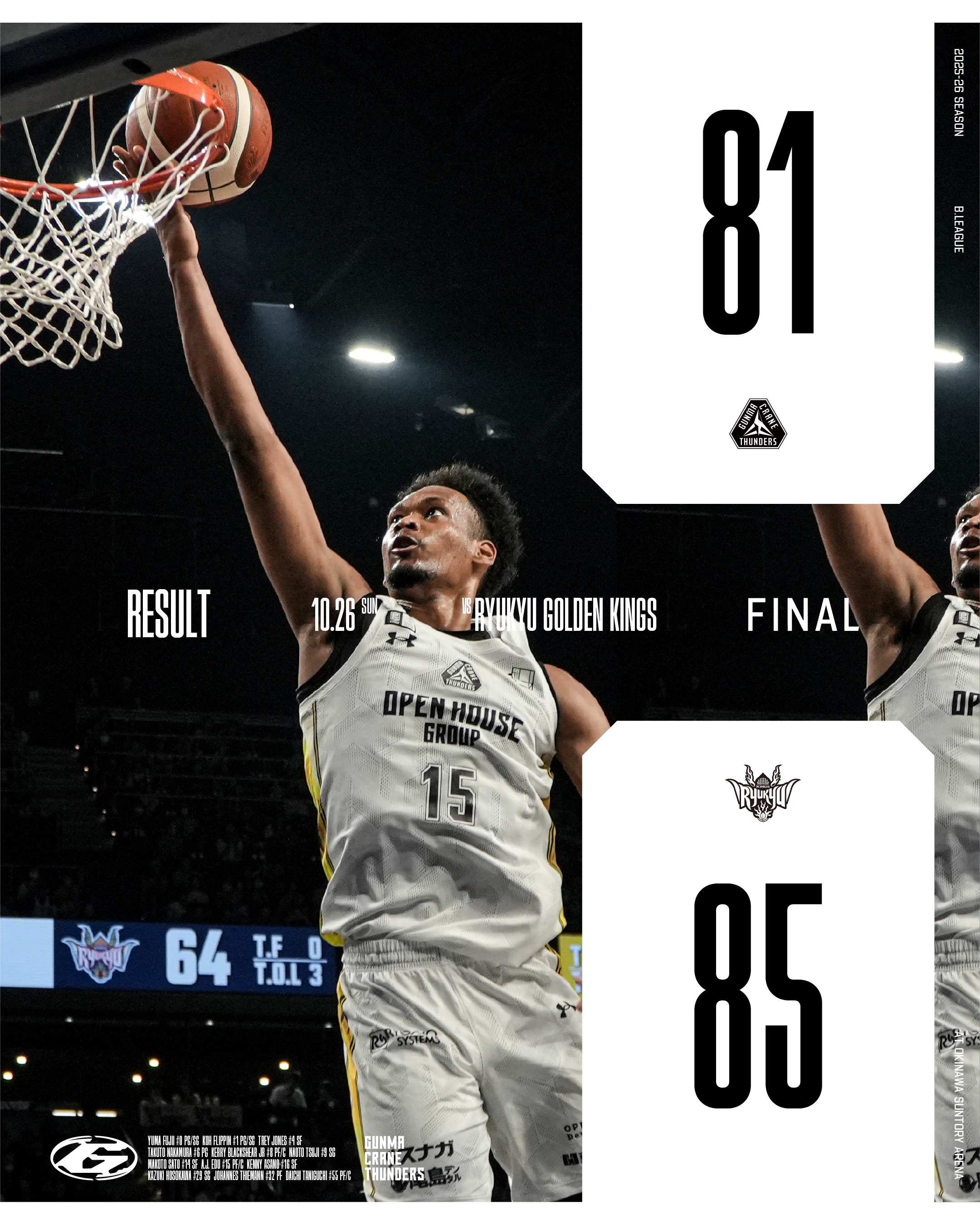 【群馬クレインサンダーズ:試合結果】10/26(日) vs 琉球ゴールデンキングス りそなグループ B.LEAGUE 2025-26シーズン
