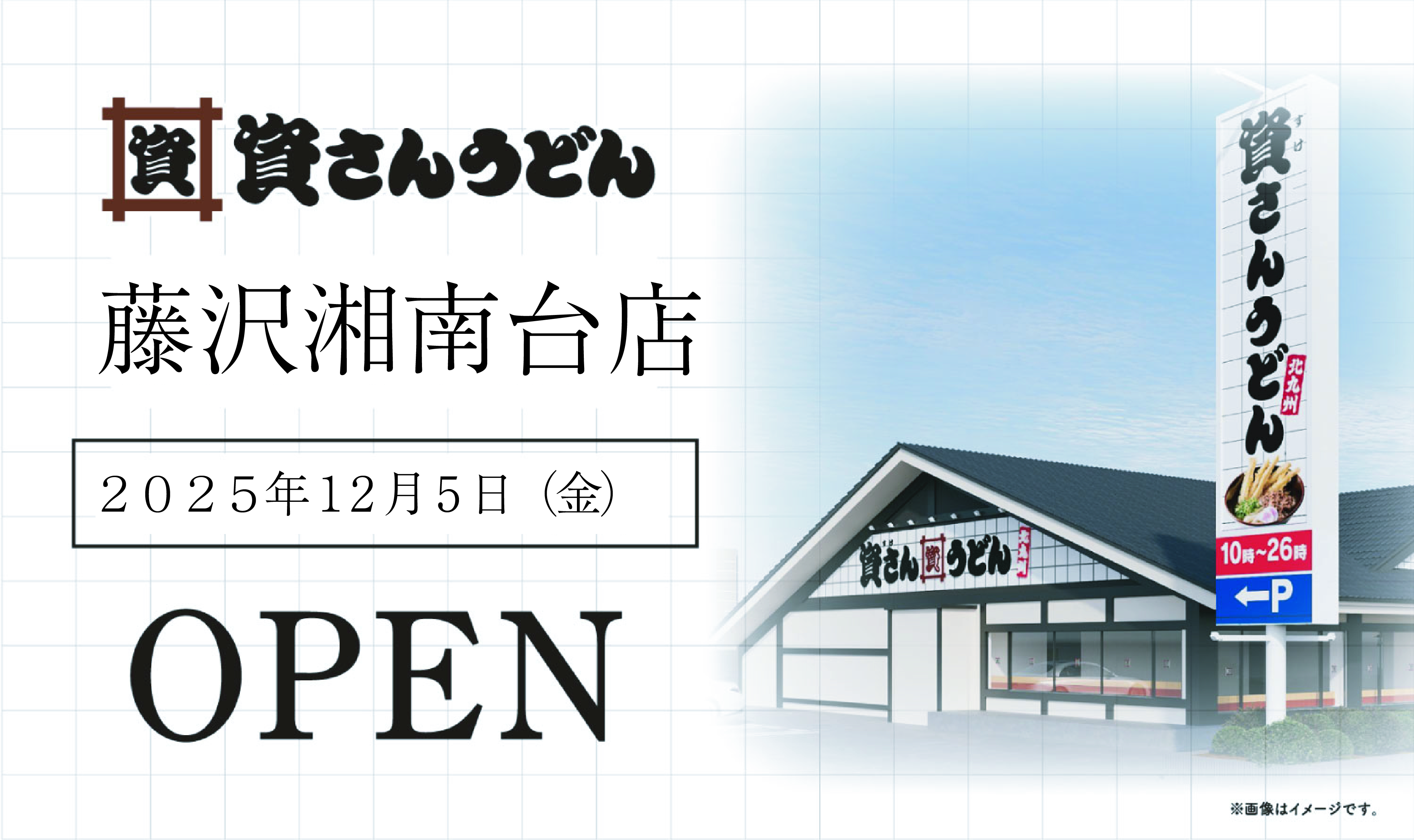 神奈川県3店舗目!湘南エリア・藤沢市初!北九州のソウルフード資さんうどんは「資さんうどん藤沢湘南台店」を12/5(金)午前10時~グランドオープン!美味しいお食事と笑顔でお客さまに幸せをお届けします。