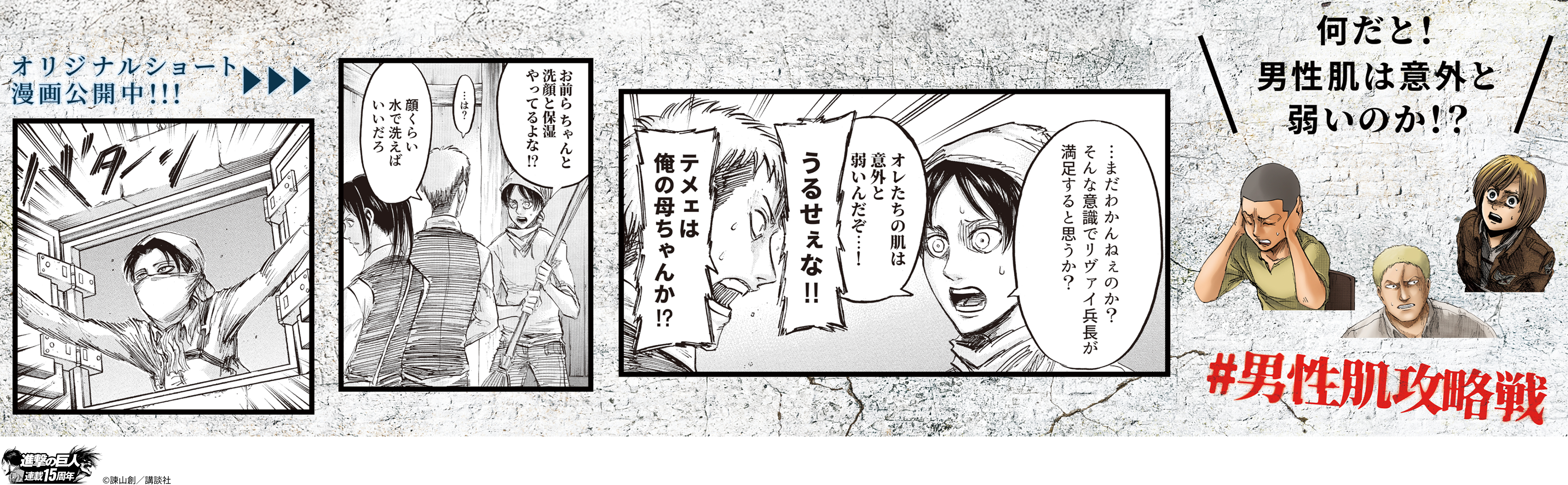 スキンケアを説くリヴァイ兵長が新宿駅・梅田駅に出現!交通広告限定オリジナルショート漫画で男性肌の“壁※”の攻略法を学べ! ~『進撃の巨人』コラボタンブラーが当たるSNSキャンペーンも追加実施決定~PR TIMES アニメ