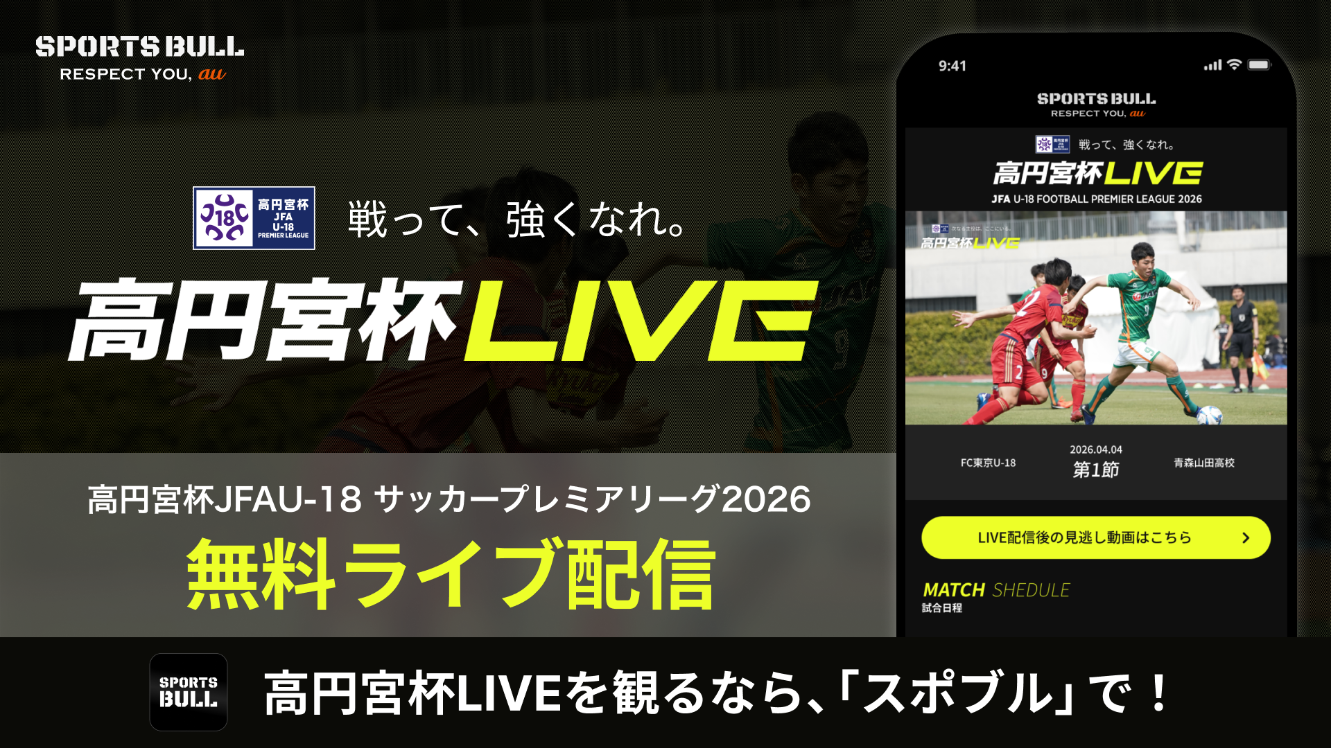 「高円宮杯 JFA U-18サッカープレミアリーグ 2026」を「SPORTS BULL」で無料ライブ配信!