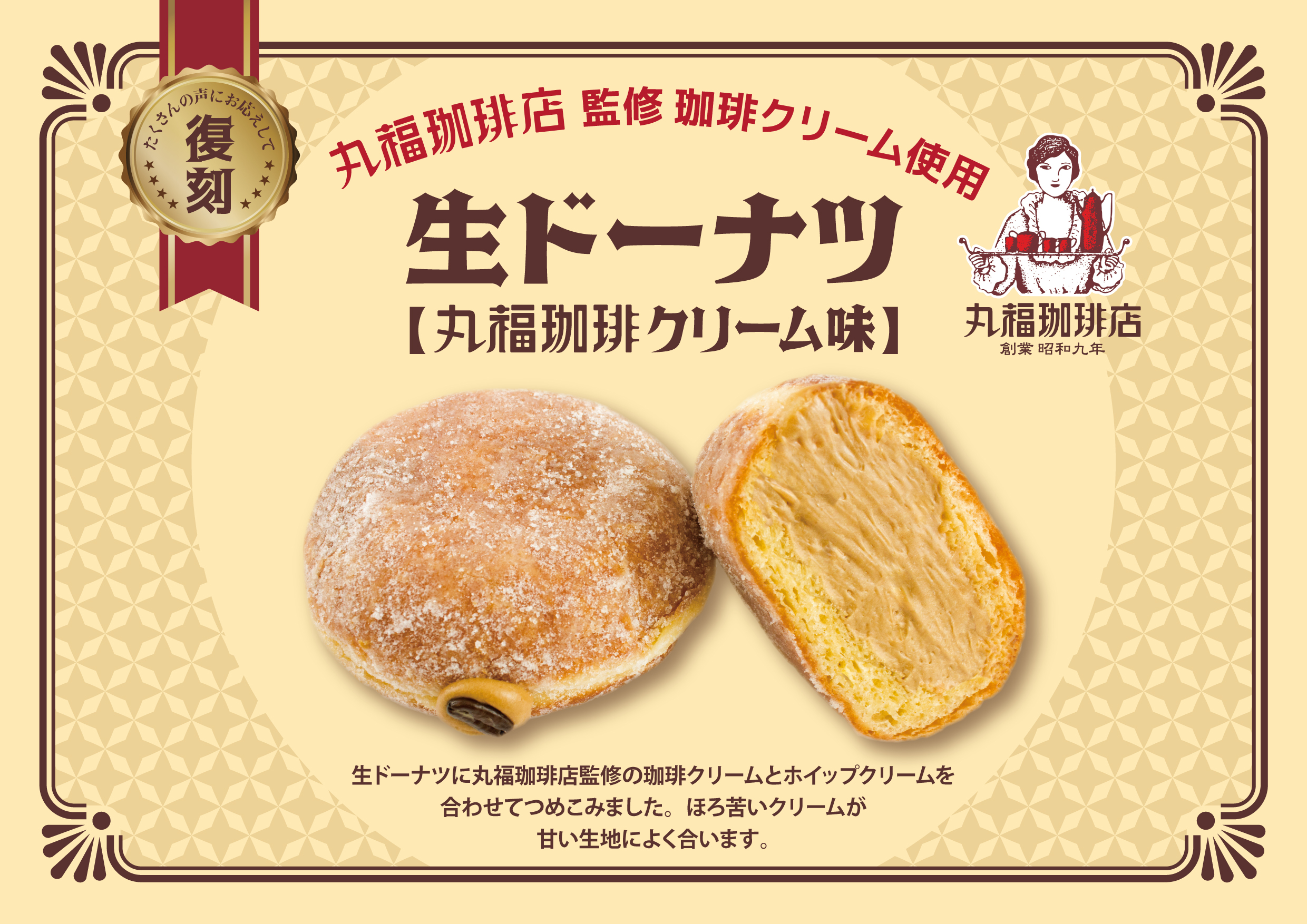 【阪急ベーカリー】【フレッズカフェ】復刻!大好評をいただいた『丸福珈琲店監修の珈琲クリーム』を使用した「生ドーナツ」を期間限定で販売いたします!