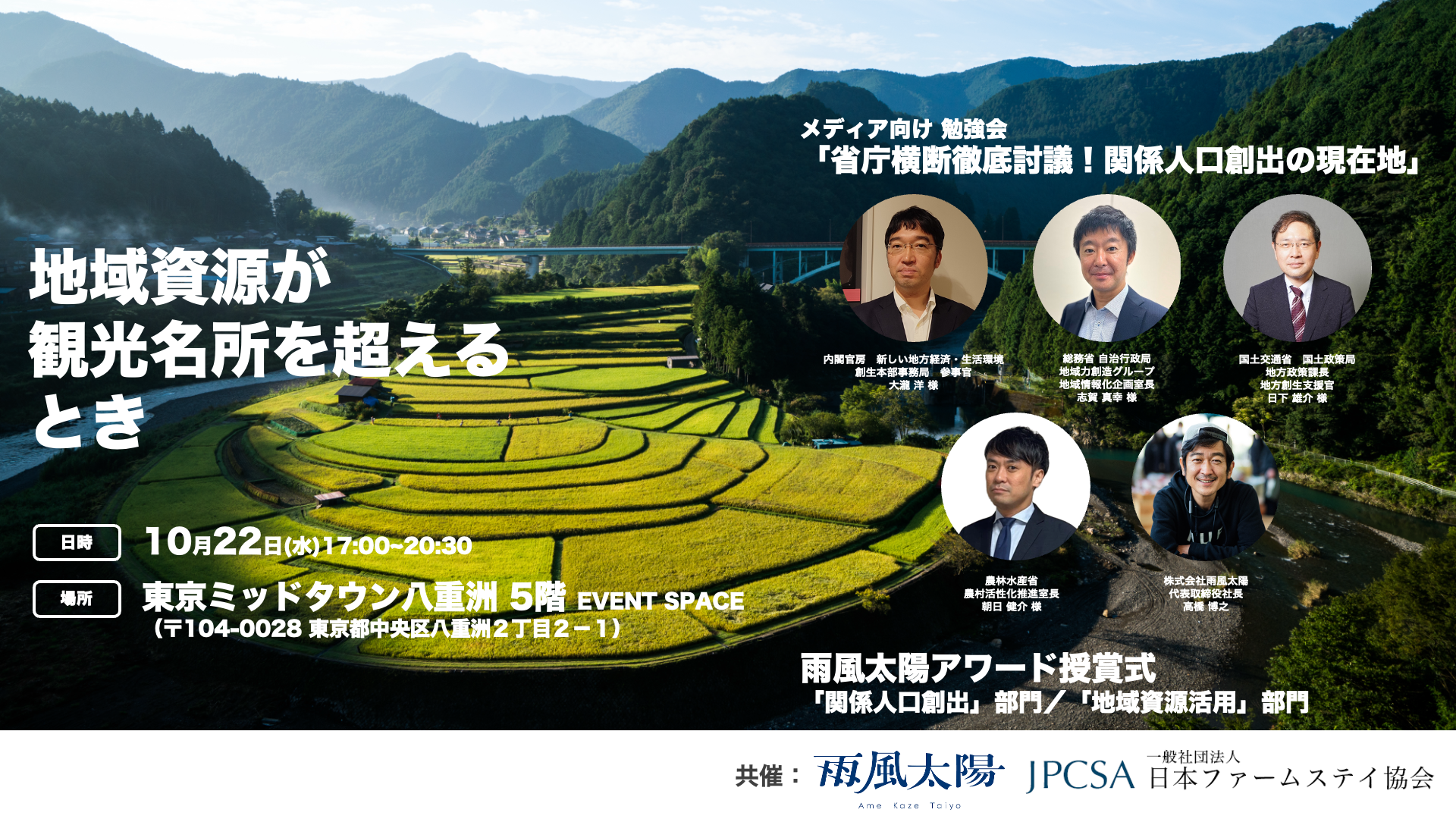 雨風太陽と日本ファームステイ協会が、”関係人口の創出がもたらす地方へのインパクト”をテーマにしたイベント「地域資源が観光名所を超えるとき」を10/22(水)に開催