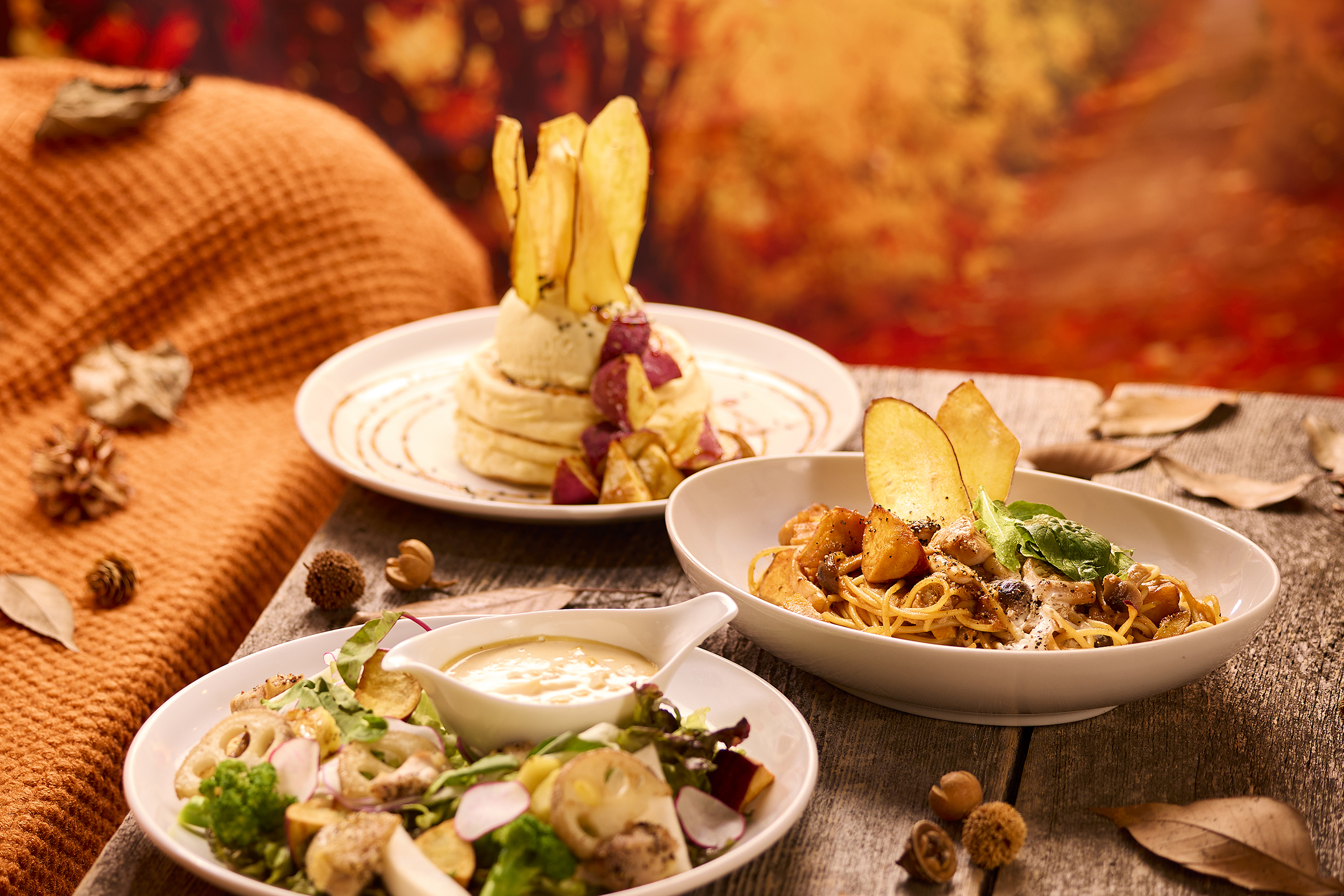 【高倉町珈琲】「秋の特別メニュー」が9月18日から期間限定でスタート!食欲の秋を意識した多彩なメニューに加え、「栗のパンケーキ」と「さつまいものパンケーキ」が再登場!