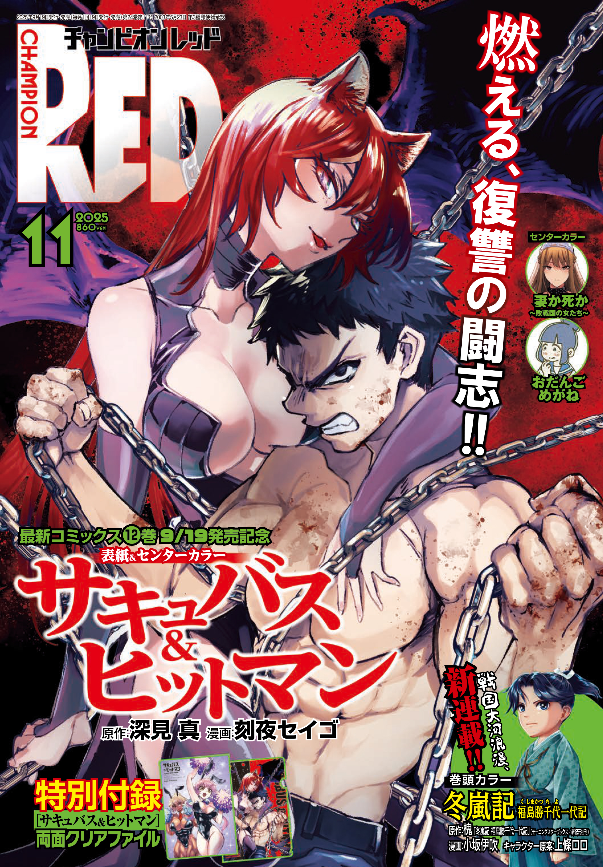 【チャンピオンRED2025年11月号】「小説家になろう」で大人気作品をコミカライズ!戦国大河浪漫「冬嵐記 福島勝千代一代記」が新連載開始!「サキュバス&ヒットマン」の表紙と付録が目印!!