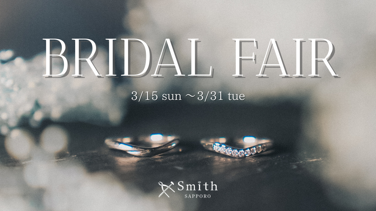 札幌の手作り結婚指輪・婚約指輪「工房Smith札幌本店」が、4月1日よりブライダルフェアを開催。3本セットご成約で貴金属代金とダイヤモンドが15%OFFに!