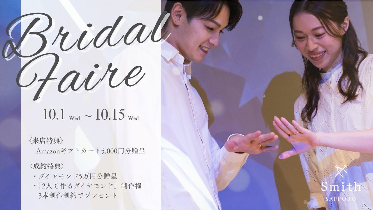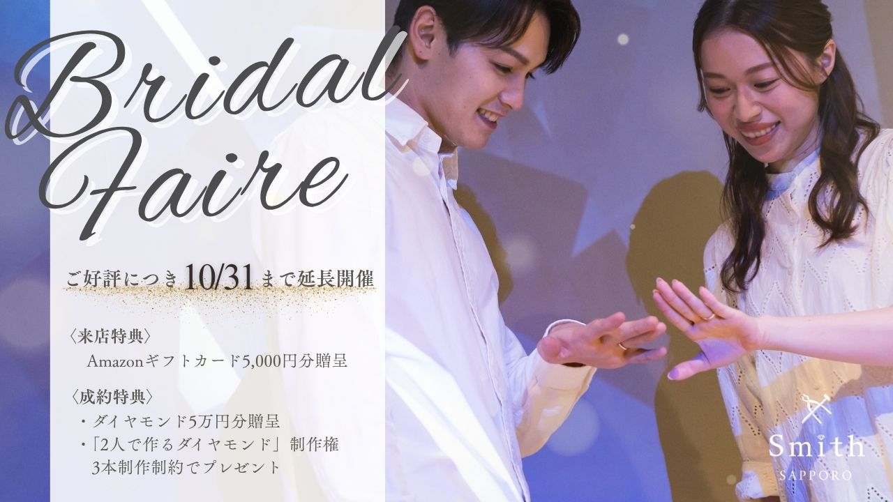「2人で作るダイヤモンド」制作権がもらえる豪華ブライダルフェアを工房Smith札幌本店で開催|結婚・婚約指輪をお探しのカップルへご来店でもらえるAmazonギフトカード5,000円分をご用意!
