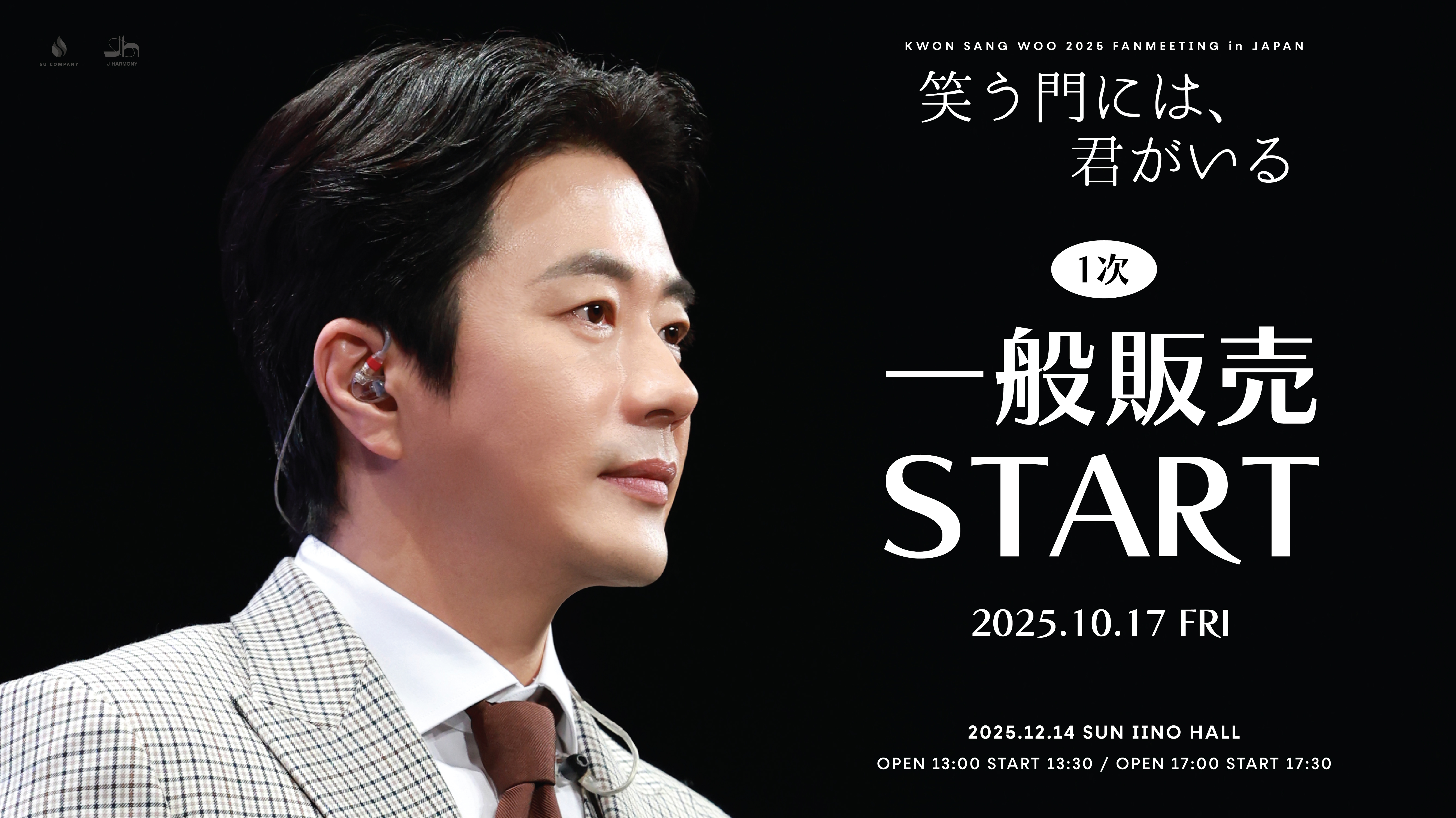 『KWON SANG WOO 2025 Fanmeeting in JAPAN ‘笑う門には、君がいる’』本日18時より一般販売1次(先着)受付開始!