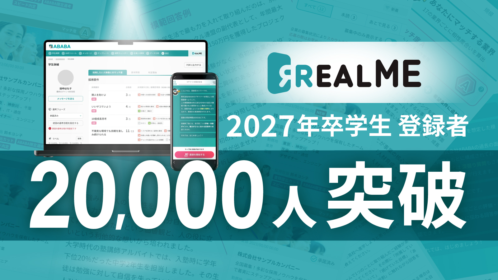 採用したい人物像そのものと出会える『REALME』 2027年卒学生の登録者数が2万人を突破