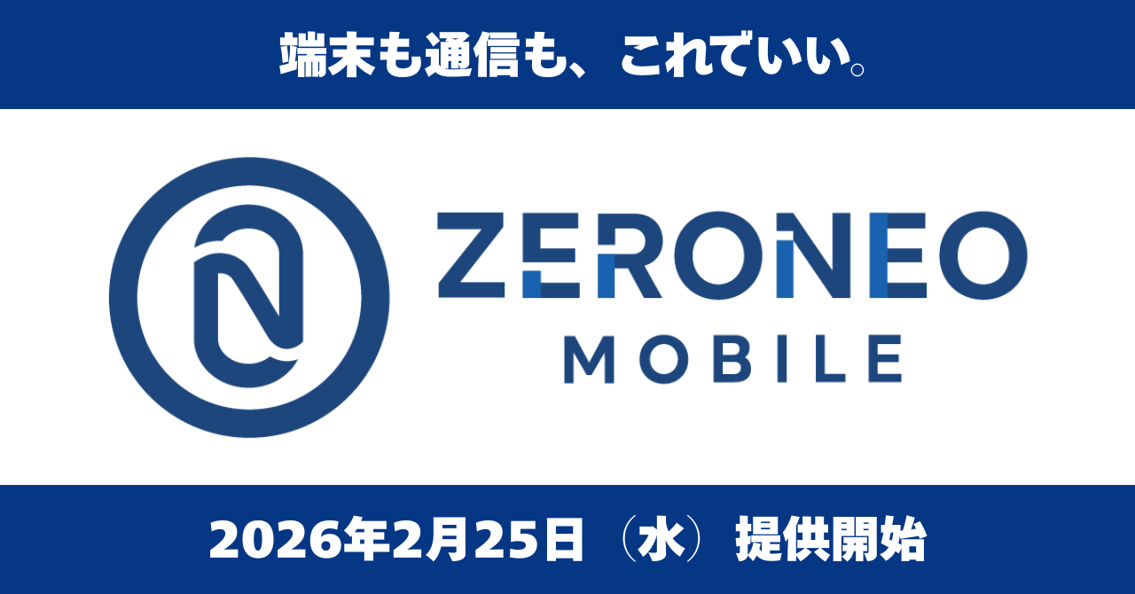 端末も通信も、これでいい。実質端末代0円の新MVNO「ZERONEO MOBILE(ゼロネオモバイル)」誕生。端末+SIMセットで実質月額料金4,818円(税込)~。