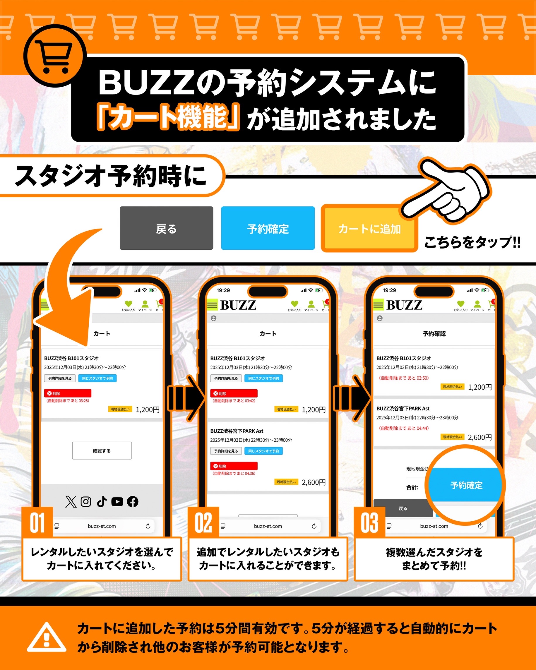 【予約革命】STUDIO BUZZ、支払い方法が違う予約も"まとめてカートイン"可能に!新機能「カート機能」で予約体験が劇的進化!
