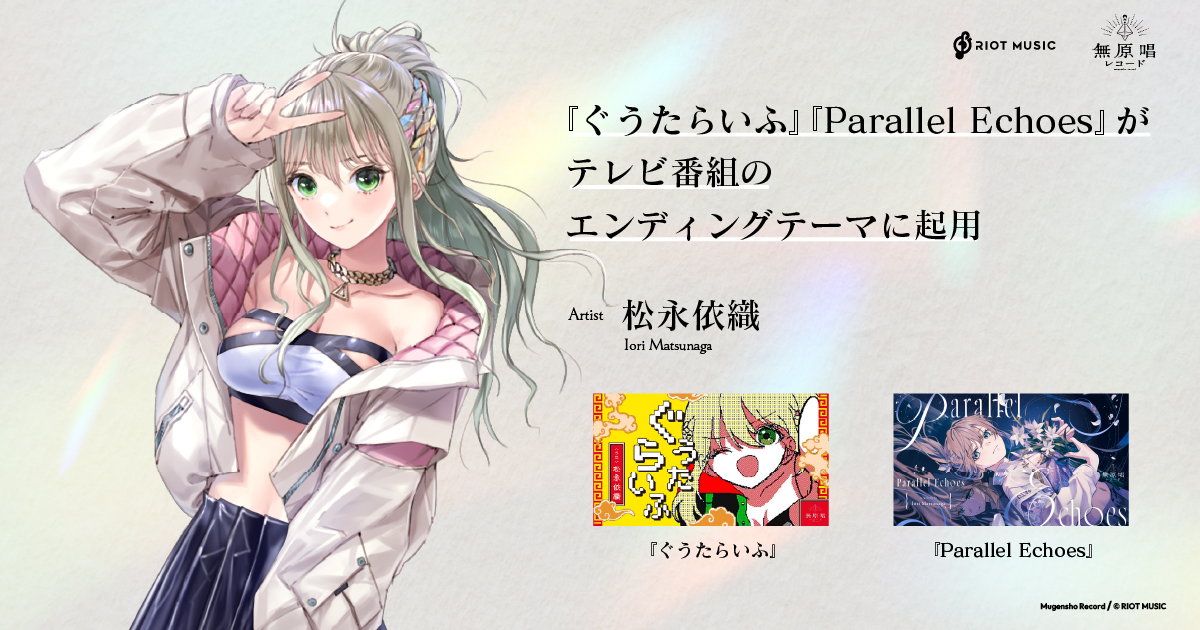 無原唱レコード「松永依織」の新譜『ぐうたらいふ』と『Parallel Echoes』がテレビ番組のエンディングテーマに起用