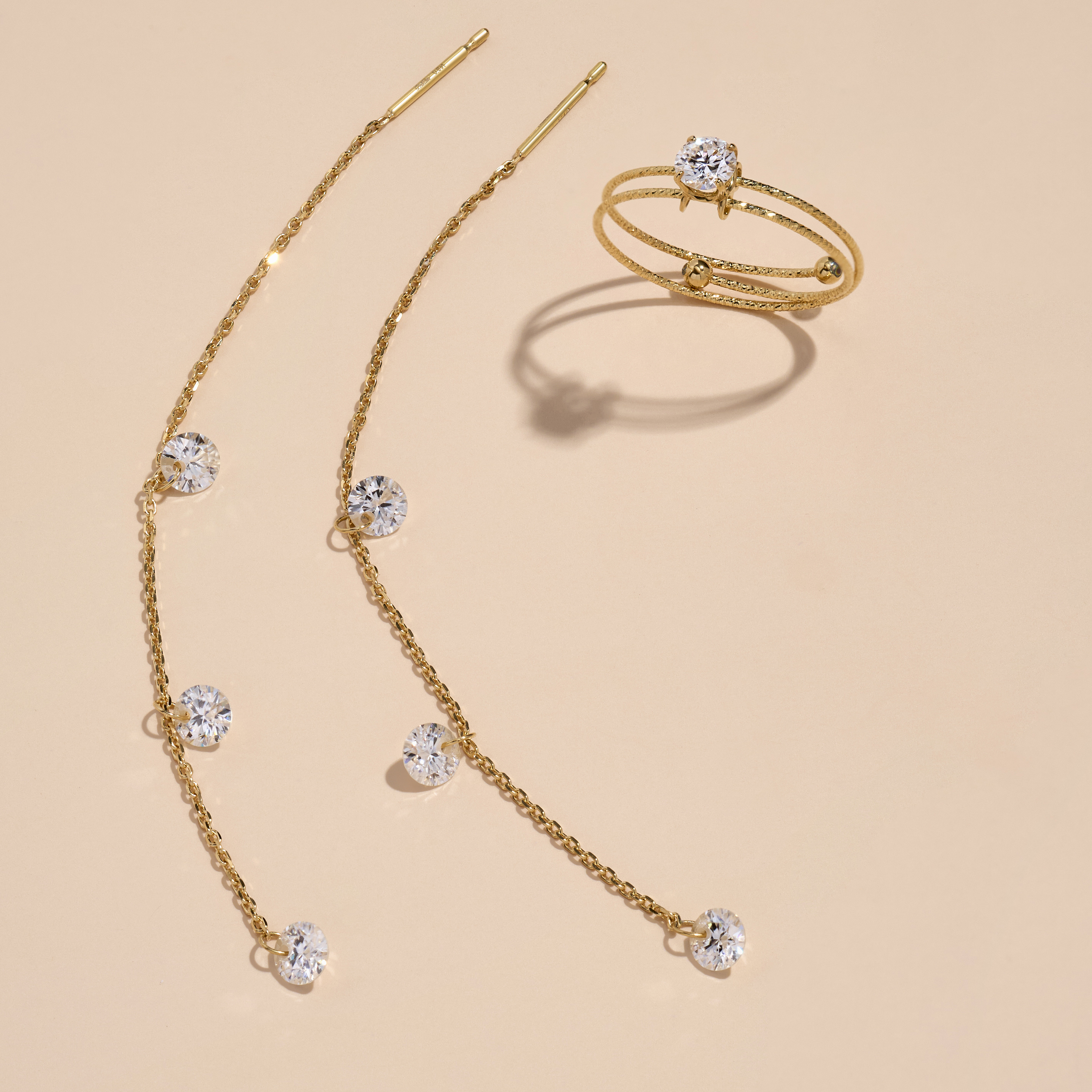 モアサナイトが“浮かぶように輝くリング”と“揺れて煌めくピアス”の2アイテムが新登場 人気のレーザードリルシリーズに待望の【K10YG】ラインもデビュー