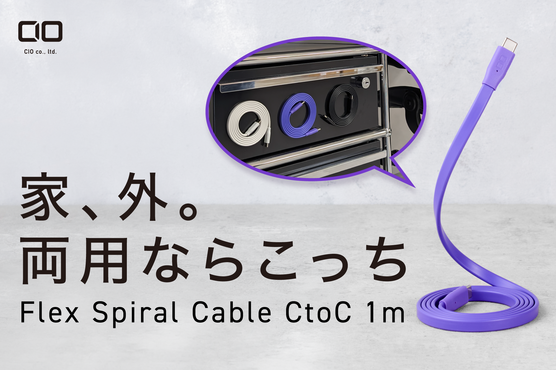 【株式会社CIO】スパイラル形状にまとまる薄型ケーブル『Flex Spiral Cable CtoC 1m』を販売開始