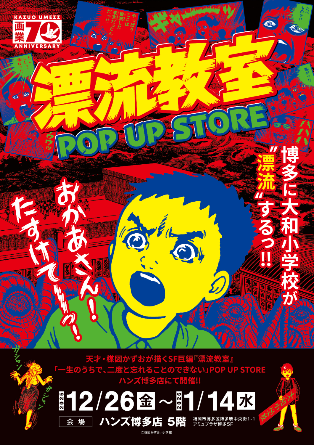 天才・楳図かずおが描いた時空を超えた少年SF巨編『漂流教室』POP UP STOREが福岡で開催決定!翔が、大友が、咲っぺが、ユウちゃんが、そして関谷がハンズ博多店に漂流する