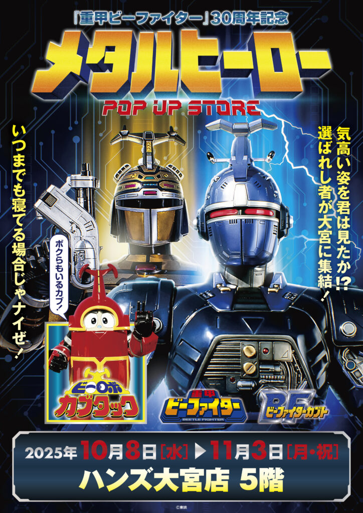 ★イベント情報★10月8日(水)~気高い姿を君は見たか!?『重甲ビーファイター』『ビーファイターカブト』『ビーロボカブタック』が再集結!メタルヒーローPOP UP STORE in 大宮開催決定!
