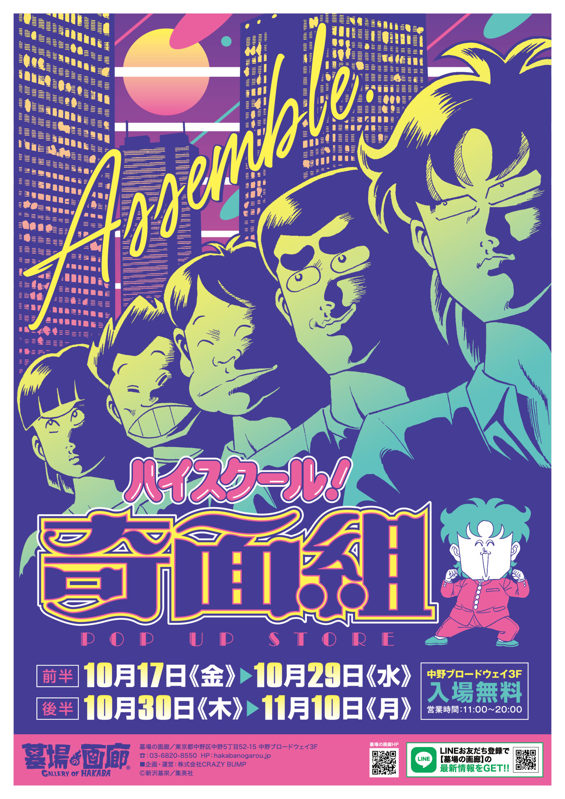 ★商品情報★10月17日(金)~週刊少年ジャンプ黄金期の立役者!80年代伝説のギャグマンガ『ハイスクール!奇面組』のPOP UP STOREにて新グッズが怒濤のリリース!