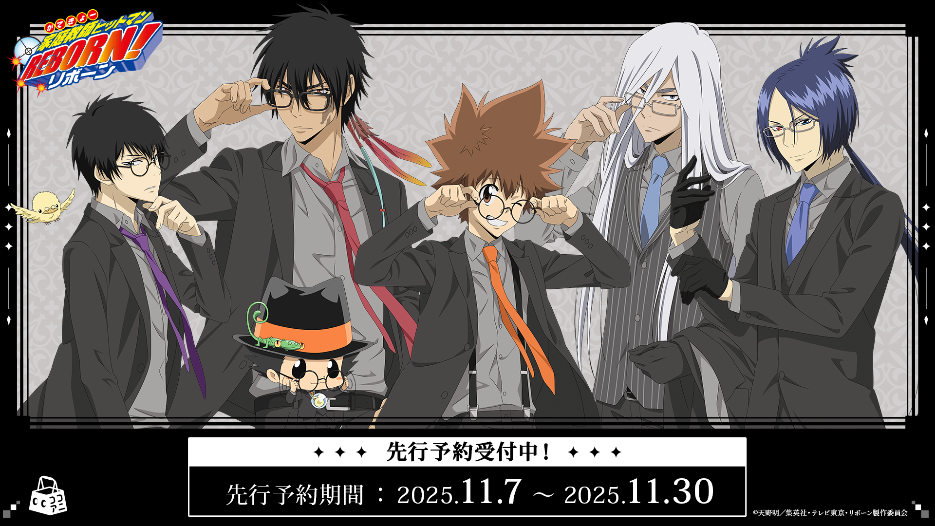 TVアニメ『家庭教師ヒットマンREBORN!』より、スーツ×メガネの描き下ろしイラストを使用した新作グッズ先行予約開始のお知らせ