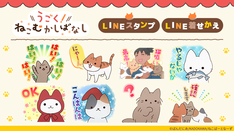 アニメ『うごく!ねこむかしばなし』LINEスタンプ・LINE着せかえ 配信開始のお知らせ