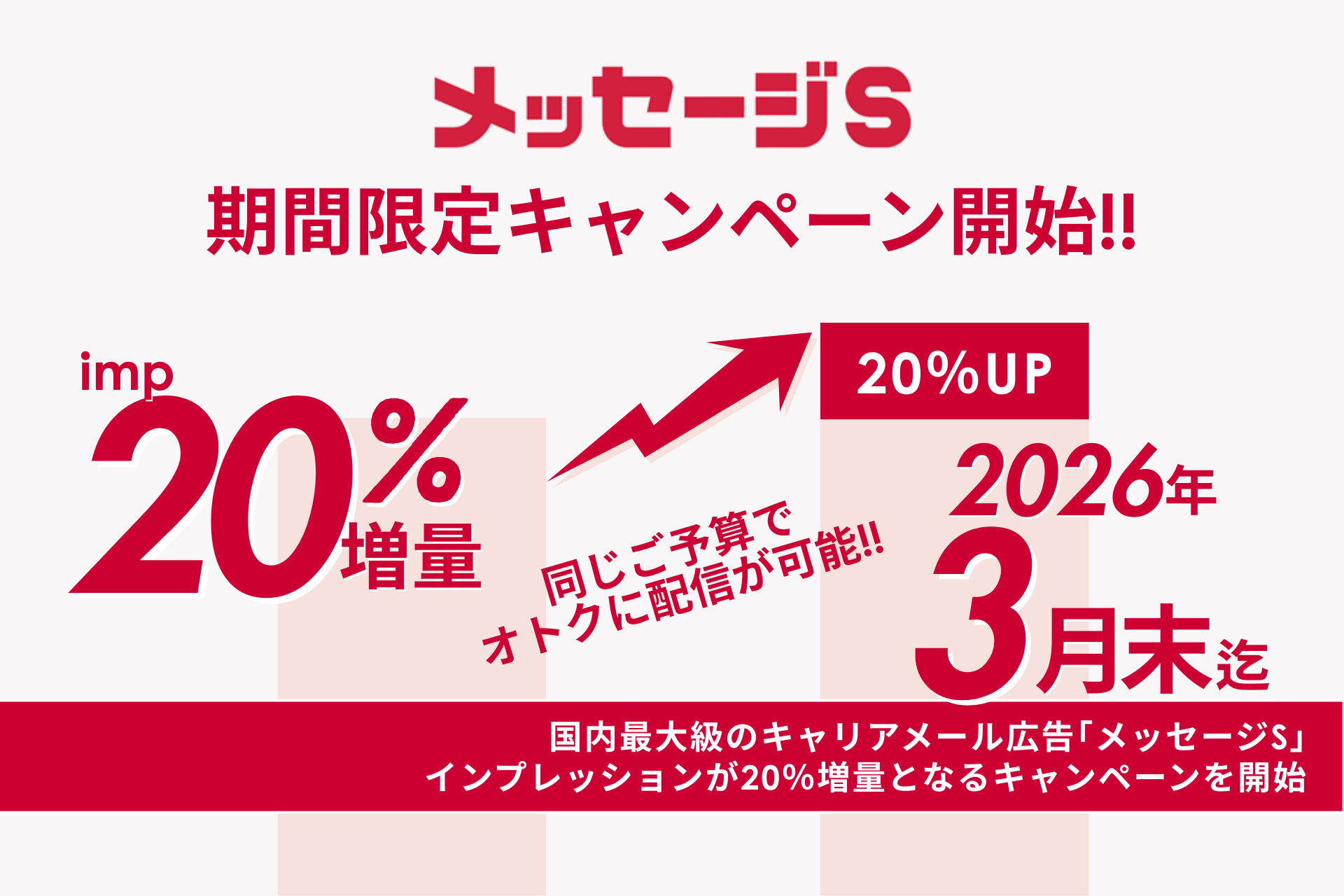 国内最大級のキャリアメール広告「メッセージS」インプレッションが20%増量となるキャンペーンを開始