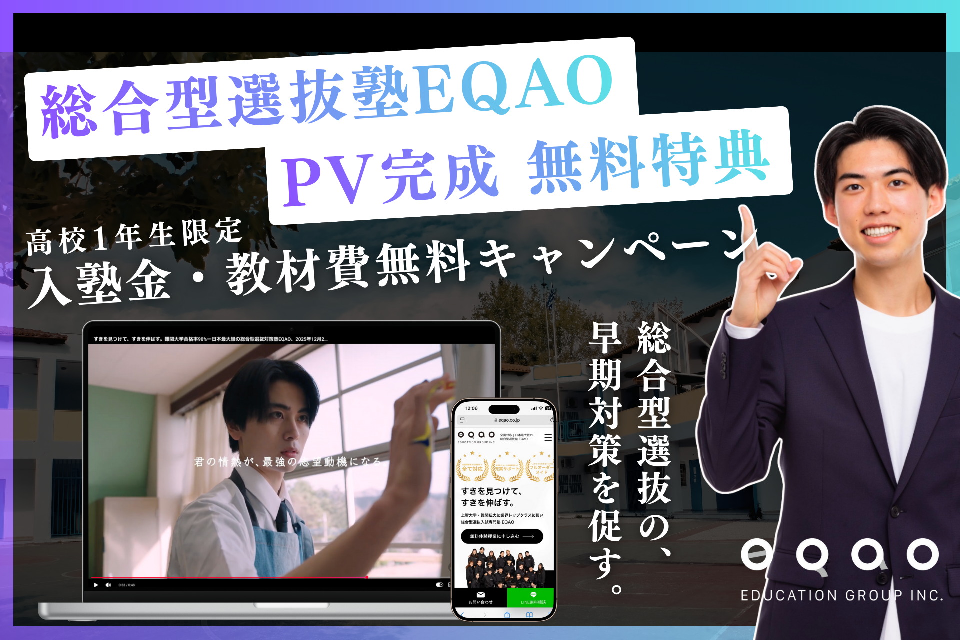 「特別な人だけが受かる入試じゃない」総合型選抜専門塾EQAOが想いを込めたPVを公開、高校1年生向け施策も始動ー総合型選抜対策はEQAO