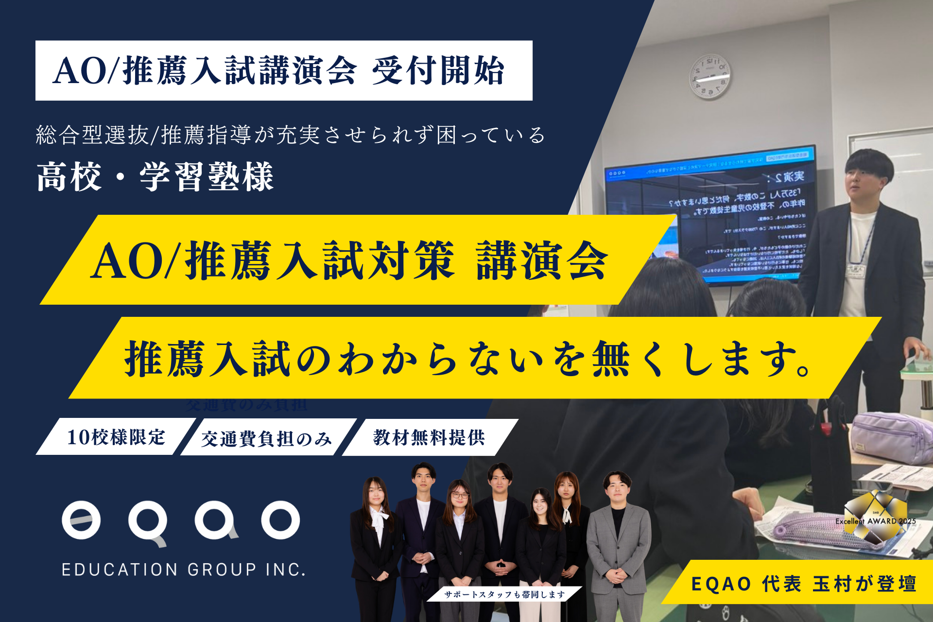 総合型選抜専門塾EQAO、SMBエクセレント企業賞 学習塾部門にノミネート 業界課題を解決するリーディングカンパニーとして評価