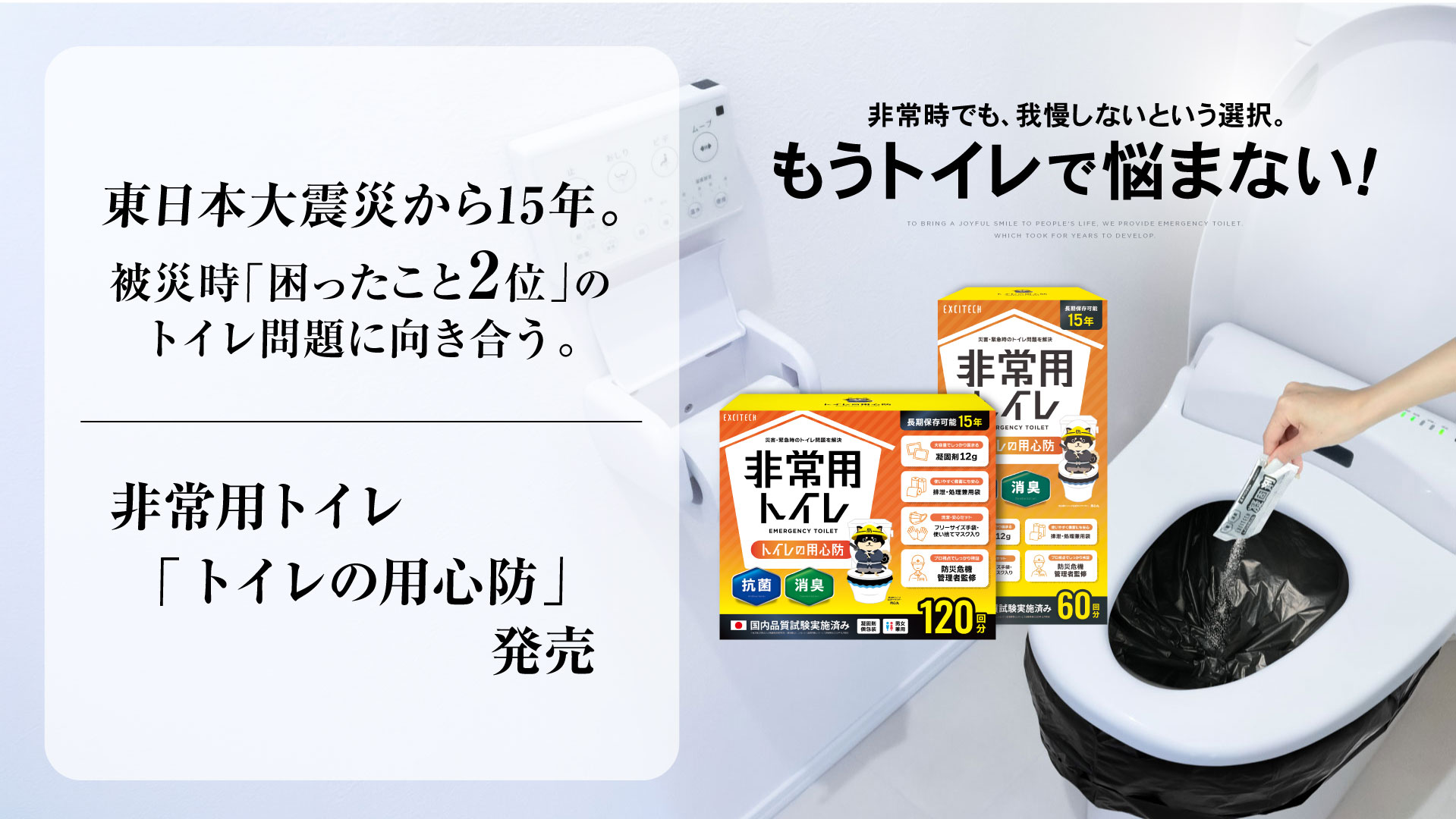 東日本大震災から15年。 被災時「困ったことランキング2位」のトイレ問題に向き合う、非常用トイレ「トイレの用心防」発売。
