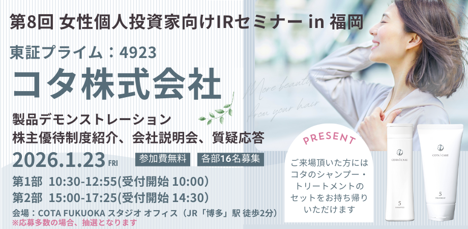 日経平均株価5万円突破、新NISAを追い風に女性個人投資家が増加 コタ株式会社(証券コード・4923・東証プライム)『女性個人投資家向けIRセミナー』を福岡・博多にて開催