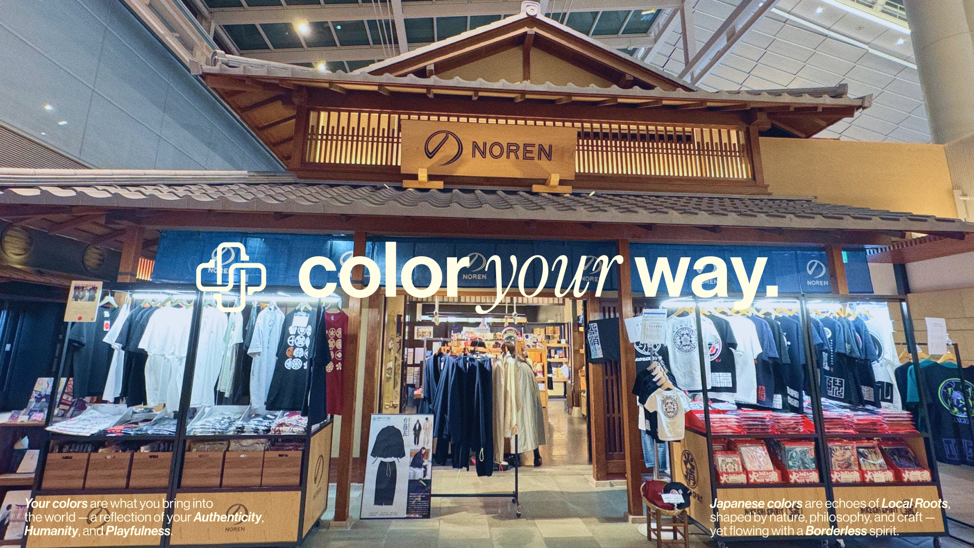 日本文化を再定義するブランド「J+」が羽田空港第3ターミナル内「NOREN」にて販売開始。スウェット作務衣など全3アイテムを展開。