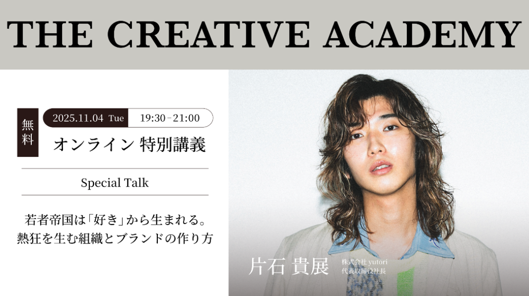 「THE CREATIVE ACADEMY 2025 2nd」に、特別講義として株式会社yutori代表の片石貴展氏の登壇が決定