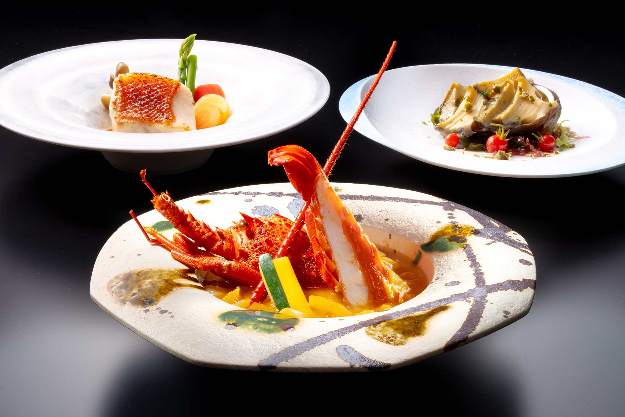 伊豆のフレンチ懐石【伊勢海老ディナー】お造り、ブイヤベース、ソテー × 鮑 × 金目鯛 × ワインペアリング