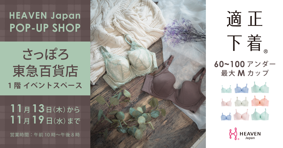 「下着でこんなに変わるんだ」が北海道・札幌でも体験できる!自分にぴったりの下着を見て・試して・購入できる、HEAVEN Japanポップアップショップを札幌の東急百貨店さっぽろ店にて11/19まで
