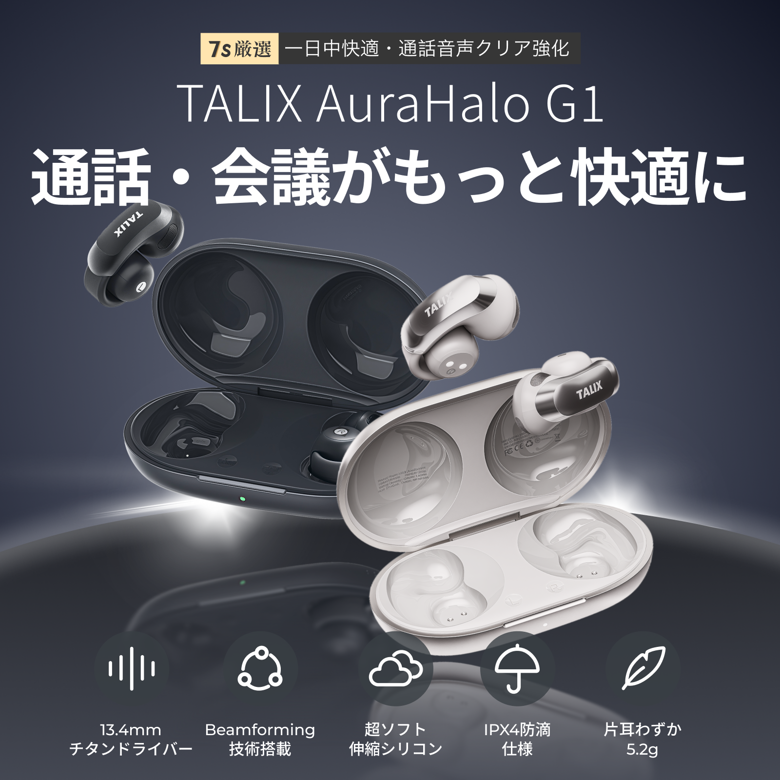 【1万5千円クラスの新定番】騒音下でも“あなたの声”だけをクリアに届ける。Lenovoの技術提供を受けるTALIX、ビジネス通話に特化したオープンイヤー型イヤホン「AuraHalo G1」を発売