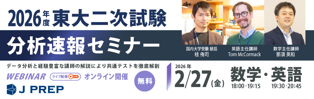 【無料ウェビナー開催】「2026年度 東大二次試験 分析速報」2月27日(金)に開催!英語塾 J PREP が英語・数学の分析速報をライブ配信!