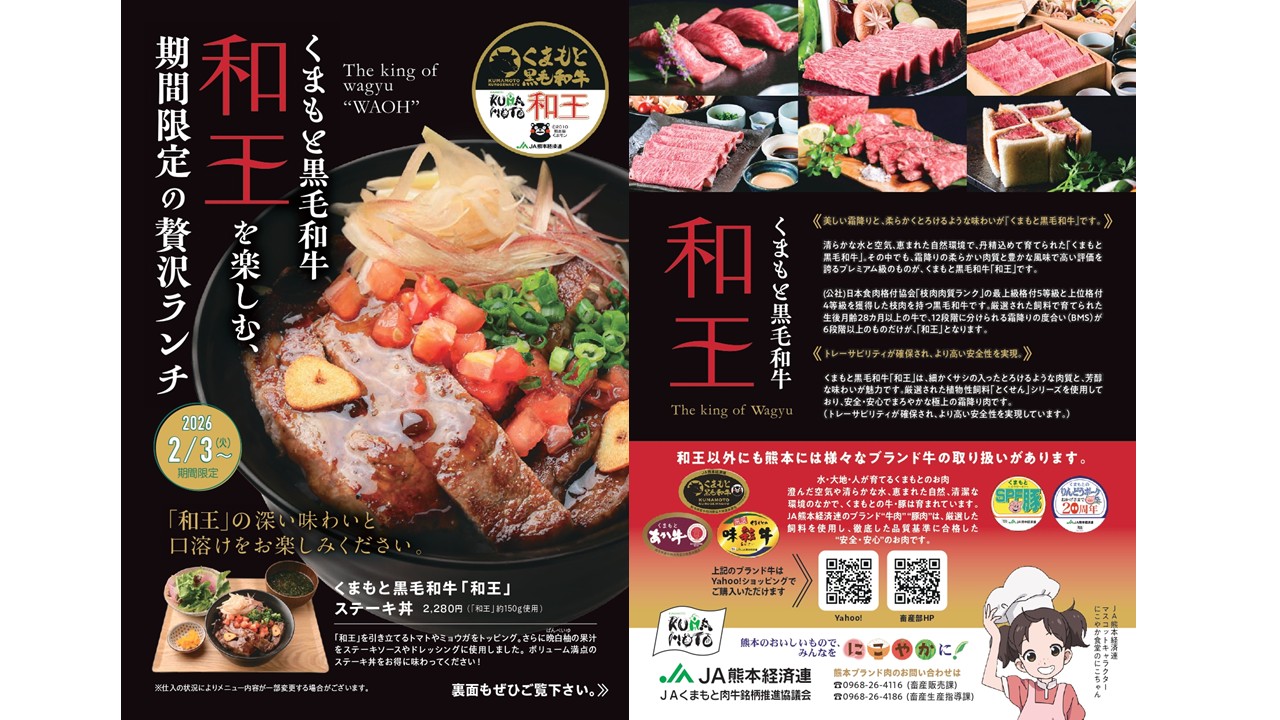 新宿駅徒歩3分『るるぶキッチン』がJA熊本経済連とコラボレーション!くまもと黒毛和牛「和王」ステーキ丼 ランチ特集フェアを開催2026年2月3日(火)から販売スタート!